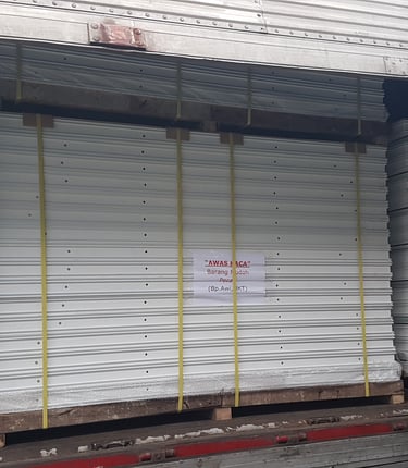 Pengiriman kusen, jendela & pintu uPVC dengan mobil wing box ke proyek hotel di luar pulau